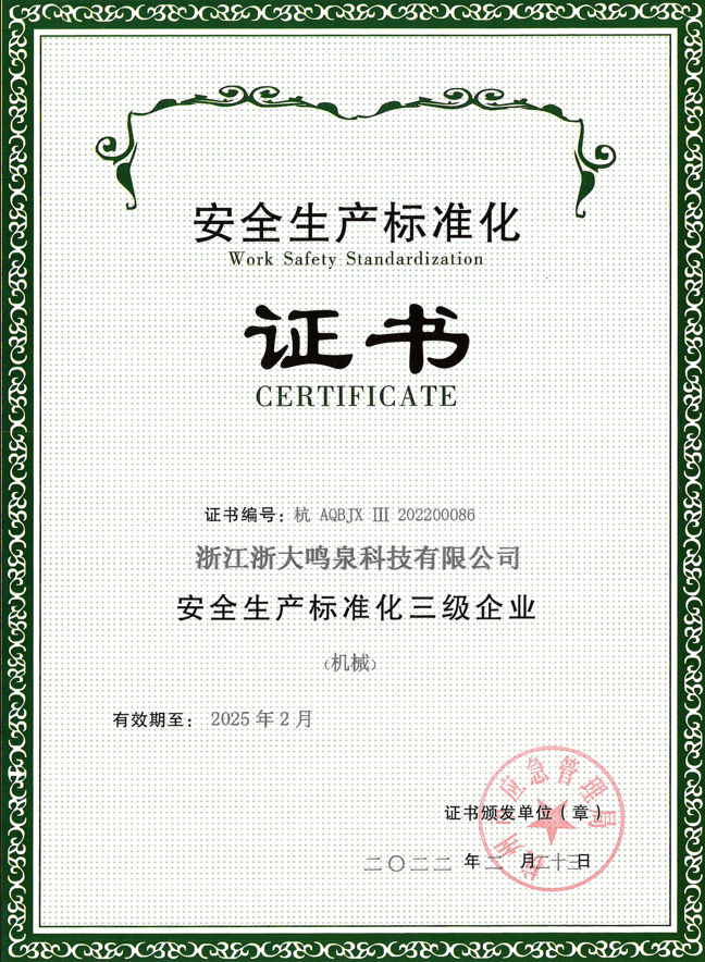 2022年2月23日,我司再次荣获由杭州市应急管理局颁发的安全生产标准化三级企业证书,这是对于我司创建安全生产标准化建设的肯定,也体现了《浙大综合赛事平台发展战略》中创建安全生产标准化建设这项体系性工作的进一步落实。