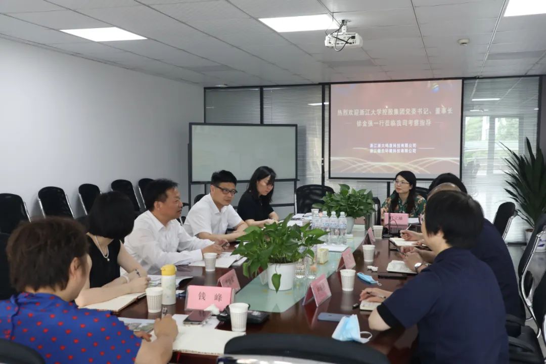 6月7日下午,浙江大学控股集团党委书记、董事长徐金强一行莅临我司,实地考察并指导工作,公司常务副总经理徐雷等领导热情接待了徐董事长一行。