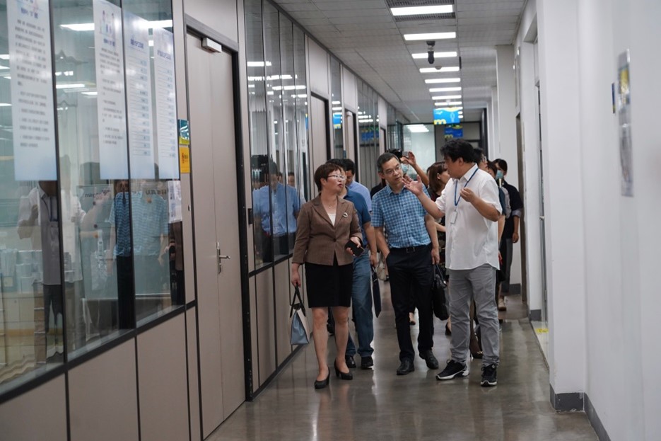 专家组一行人在王总的引导下,参观了技术中心、产品车间、文化长廊等,对浙大综合赛事平台的产品领域、市场规模和企业文化有了初步的了解。